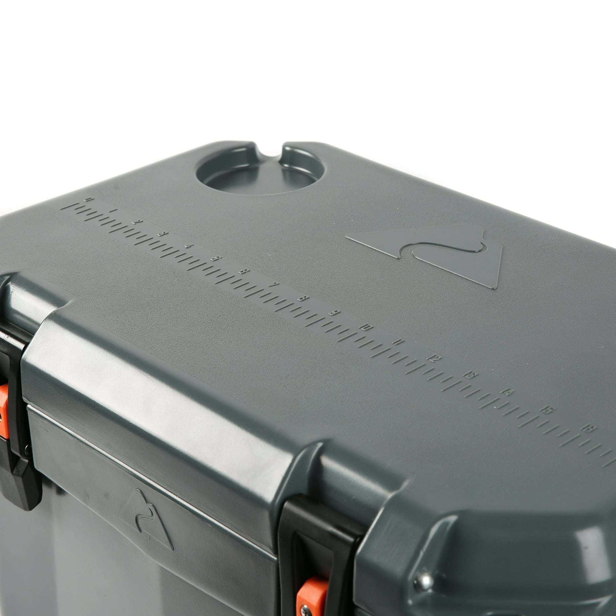 Melting ice is the last thing you want to worry about when you're out in the woods, on the boat or kicking back at the beach. The 26 Quart High-Performance Roto-Molded Cooler features heavy-duty, seamless, one-piece construction with a premium blend of polyurethane insulation. Microban is built-in protection that is guaranteed to last the lifetime of the product. It not only helps to prevent the build-up of bacterial odors and stains, but also makes the Roto Cooler easier to clean. Our insulated cooler is complemented by a whole range of features. The 26 Quart Cooler features a stainless steel locking plate with built-in bottle opener and a super-seal gasket to ensure that the cold stays in and the heat stays out. This ice cooler also features new easy-open cam latches, 2 drink holders, a built-in fish ruler and heavy-duty handles with comfort grip for easy carrying.